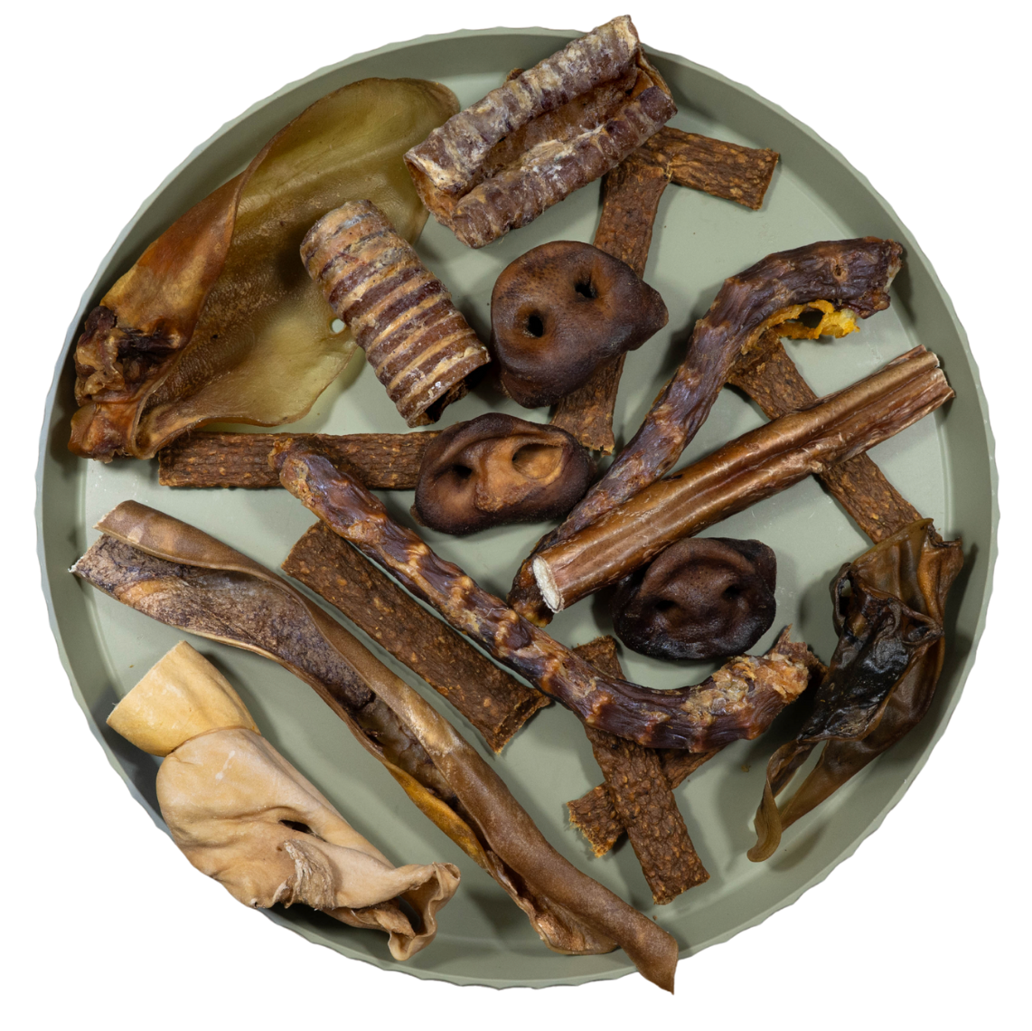In deze box vind je een smakelijke mix van stevige, luchtgedroogde snacks die zorgen voor kauwplezier én een gezond gebit. Perfect voor snuiten die niet bang zijn om hun tanden te gebruiken!
