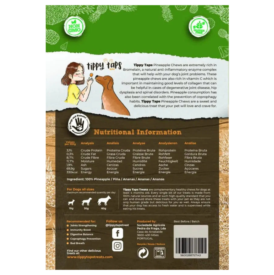 Geef Tippy Taps Ananas als gezonde tussendoor-snack of meng de stukjes door de maaltijd voor een fruitige, voedzame twist.